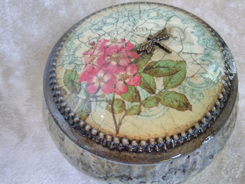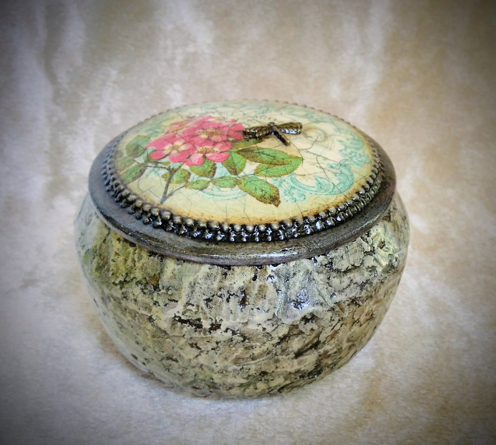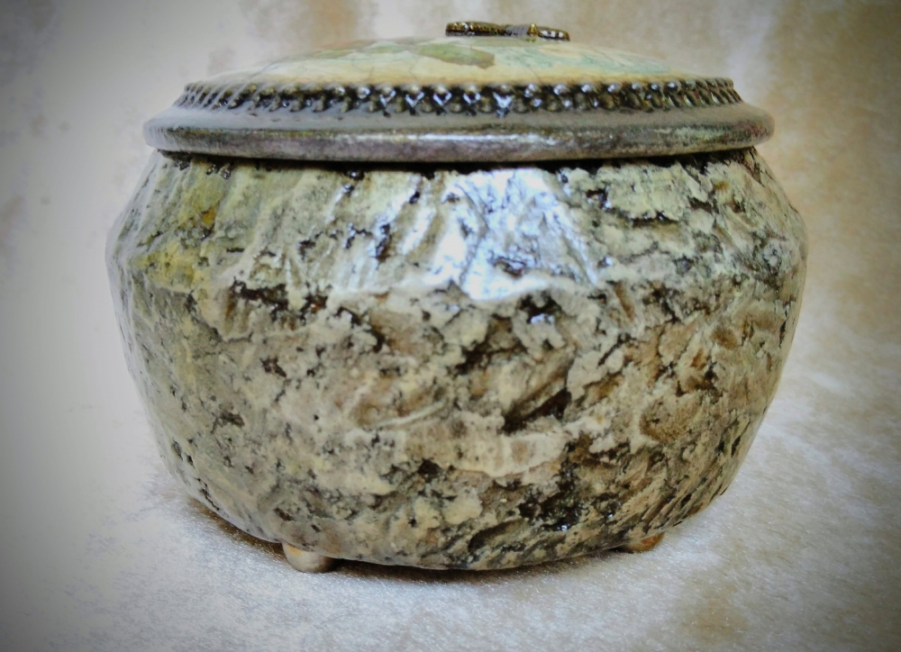 Der Unterteil der Schatulle ist eine Steinimitation, der Oberteil – eine Porzellanimitation.
