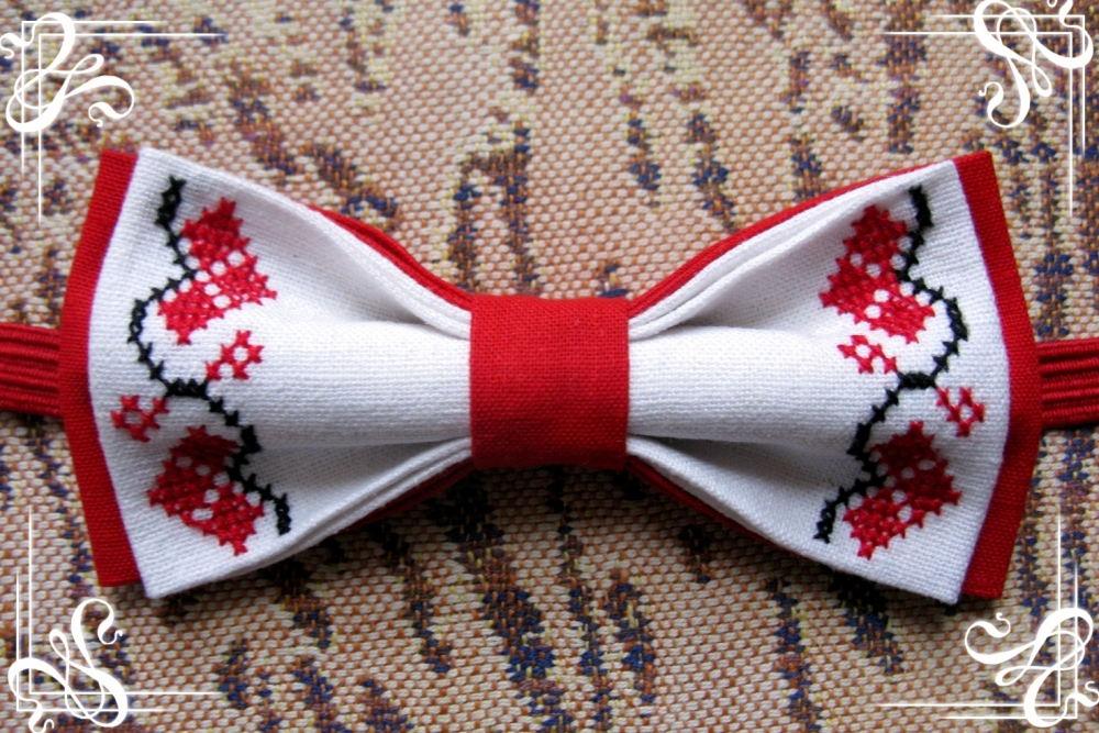 Оригинальный галстук-бабочка ручной работы с вышивкой.
