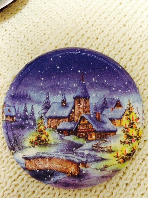 The plate is made of gypsum, is decoratedby means of decoupagetechnique.