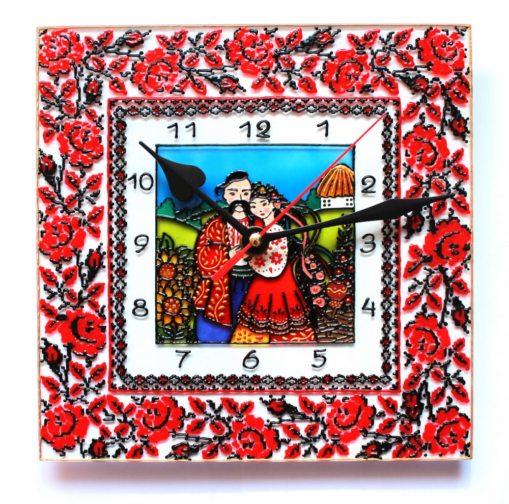 Materials – glass with worked rims, professional stained glass colours, silent quartz clock work.