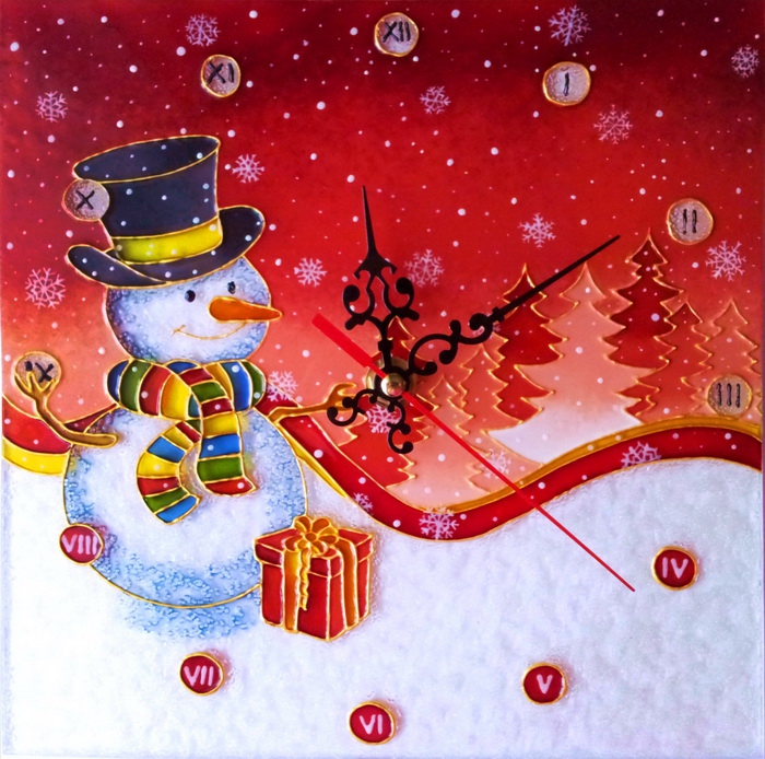 Materials – glass with worked rims, professional stained glass colours, silent quartz clock work.